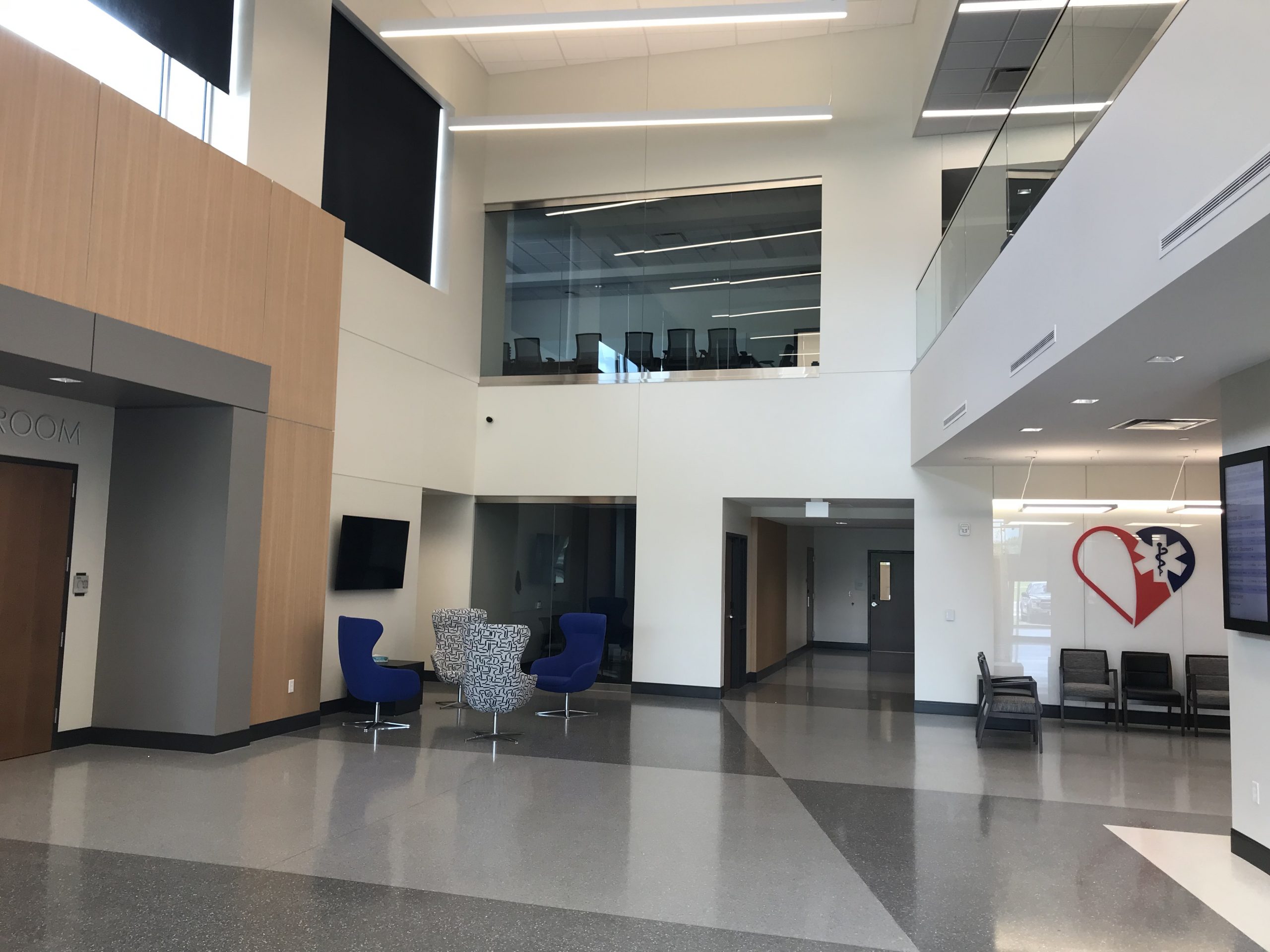 This facility combines multiple existing buildings and district functions into one location. The new building houses ambulances for scheduling, repair facilities, storage, administrative offices, training facilities, and a medical clinic. The ambulance storage area, bulk storage and repair area are conditioned to 80 degrees for occupant comfort and product storage. An emergency generator is installed to power portions of the building for emergency situations and central control.