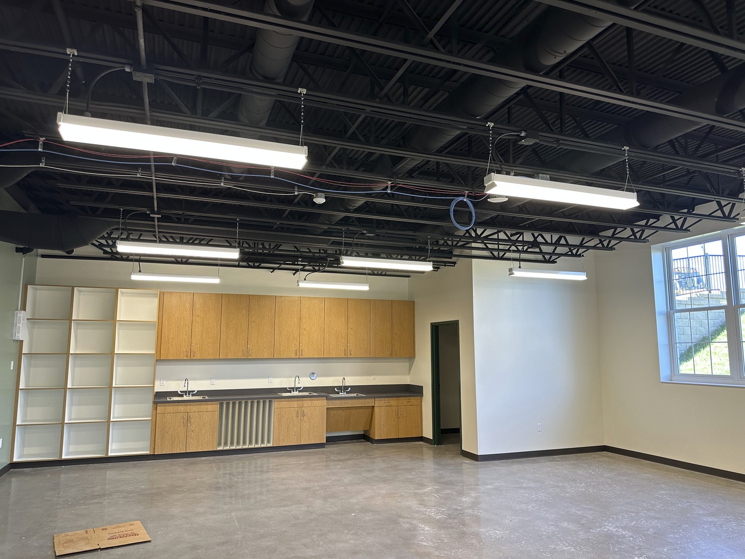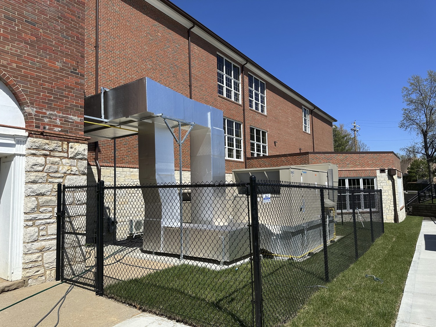 The scope of work includes renovation for a new cafeteria and kitchen, two STEM labs and special education room. The three-story addition includes a band room, classrooms, library, offices, and support spaces. The renovated classroom will be served by fan coil units as an extension of the existing VRF system. The new building will be conditioned by single zone packaged rooftop units with DX cooling and electric heating. The addition will include a new Gas-Fired Water Heater and changes to the incoming domestic service.