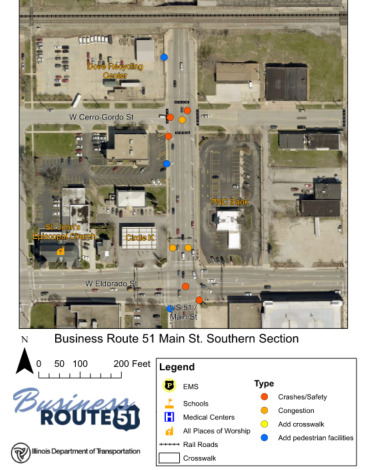 Horner & Shifrin worked with Gonzalez Companies, LLC to support the Illinois Department of Transportation (IDOT) and the City of Decatur in studying potential improvements along Business Route 51, a key corridor known locally as Water Street and Main Street. The team explored options to upgrade the roadway, enhance drainage, add a shared-use path for pedestrians and cyclists, update traffic signals, and improve lighting—making the route safer and more accessible for everyone.