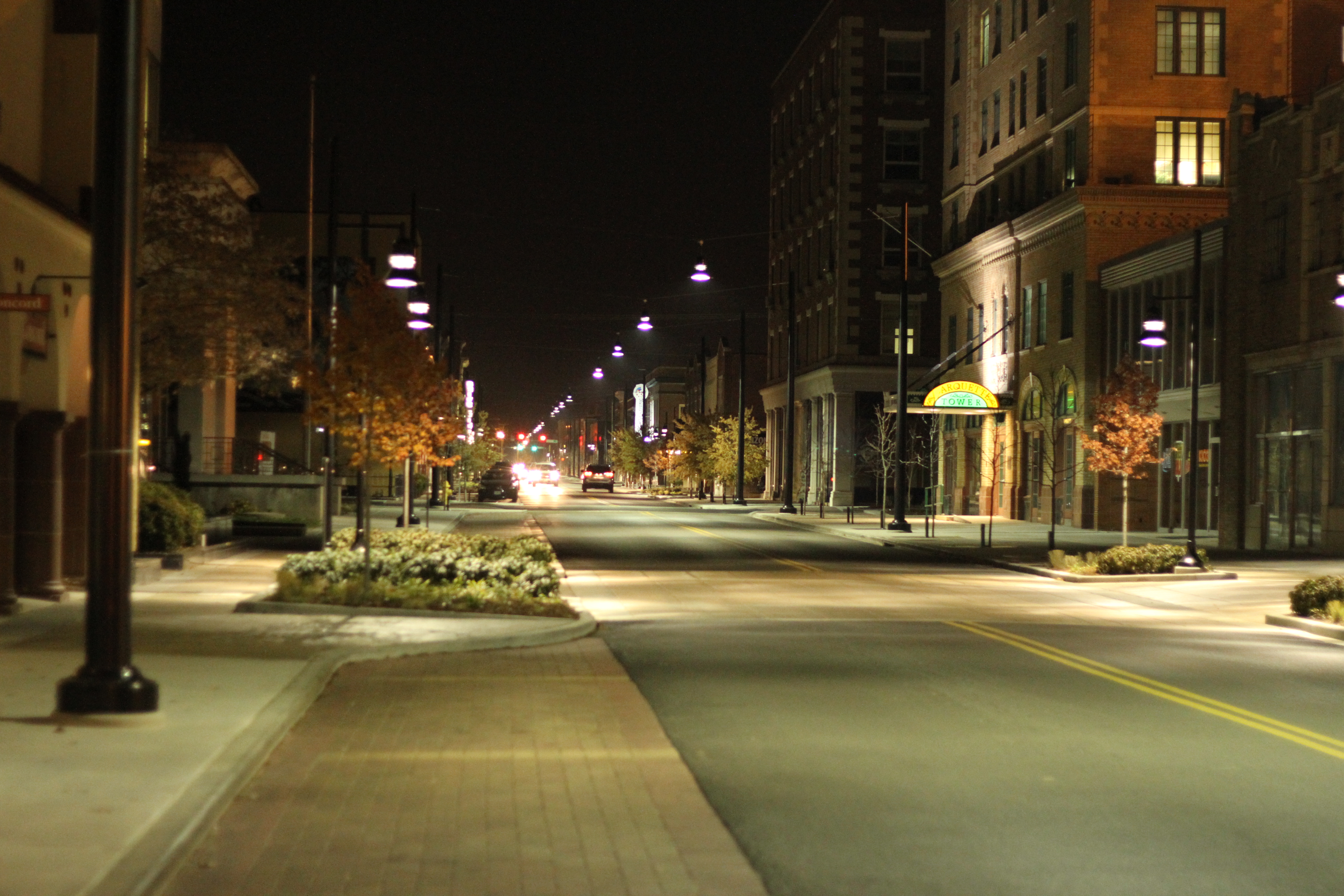 Decorative streetscape elements include unique streetlights, street trees and wells, benches, trash receptacles, street signs, sidewalk pavers, stamped concrete, crosswalks, intersection and midblock bulb outs.