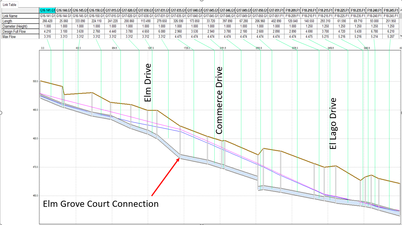 5 year and 10 year storms were modeled to review the sewer capacity and capability to transport wet weather flow. Capacity improvements to sewer lines were developed as well as additional I &I evaluation and removal plans for target areas to systematically reduce I & I.