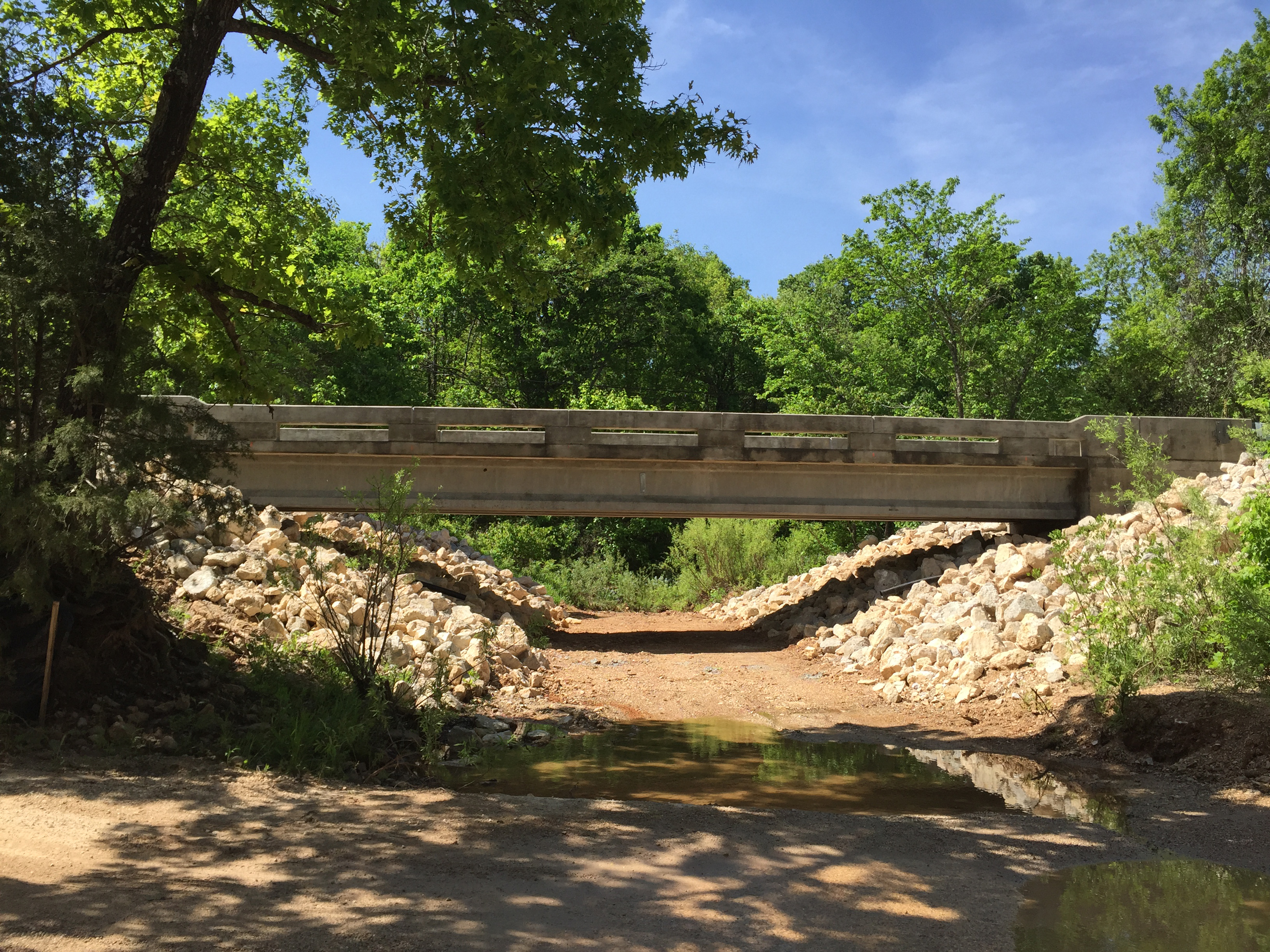 Horner & Shifrin provided engineering design and construction administration services on a team with contractor Kozeny Wagner as part of a design-build project for a replacement bridge on Training Area 244 in Fort Leonard Wood. The 63-ft long, single lane precast concrete girder bridge replaces a low water crossing which had previously washed out. The integral abutments are founded on steel H-piles driven to rock. Work included raising the profile of the gravel road approaches and the inclusion of guard rail. Horner & Shifrin also performed the role of Quality Control Manager during design and construction.
