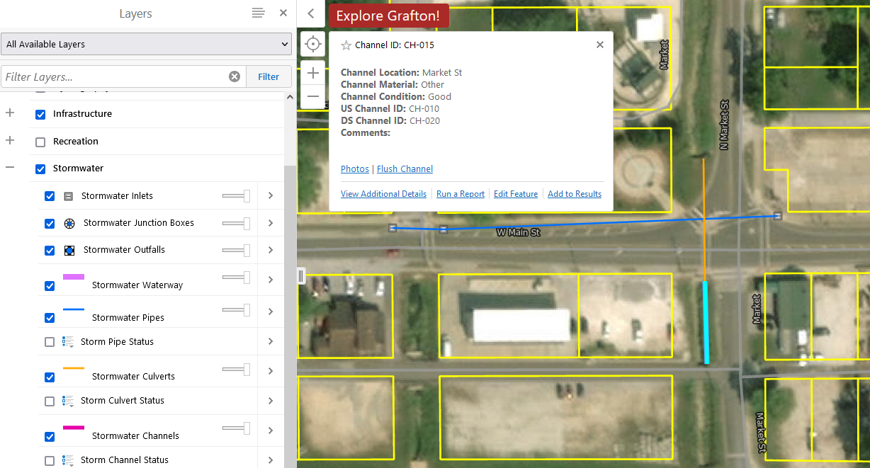 The City of Grafton, IL retained our GIS Hosting services for developing and implementing a comprehensive Geographic Information System (GIS) with a focus on the management of their Stormwater Systems, Zoning, Wards, Real Estate, Tourism, Parks, Events, and the other assets as required. This project utilized our web-based Skyview GIS platform which allow City staff to view and make edits real-time out in the field and/or back in the office.