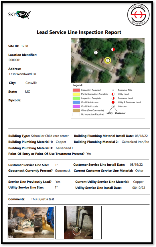 The Skyview GIS platform makes it easy for the City to generate reports at any stage of the project, whether for a single property or the entire community. These reports are designed to meet EPA requirements and can be shared directly with the EPA or accessed online for compliance review. The system’s mapping features also help city staff quickly analyze and identify areas of concern.