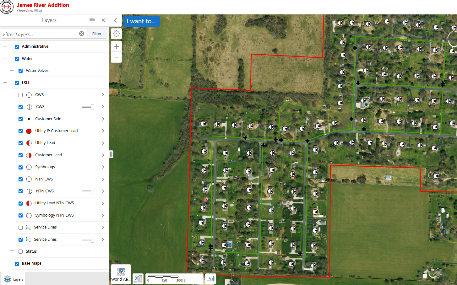 Horner & Shifrin partnered with the James River Addition subdivision in Springfield, Missouri, to help inventory water service lines for 96 homes. The team started by gathering all available digital and paper records, entering the information into the Skyview GIS platform. To fill in any gaps, field technicians visited each residence, checked the water service lines, and recorded the pipe materials directly into the system.