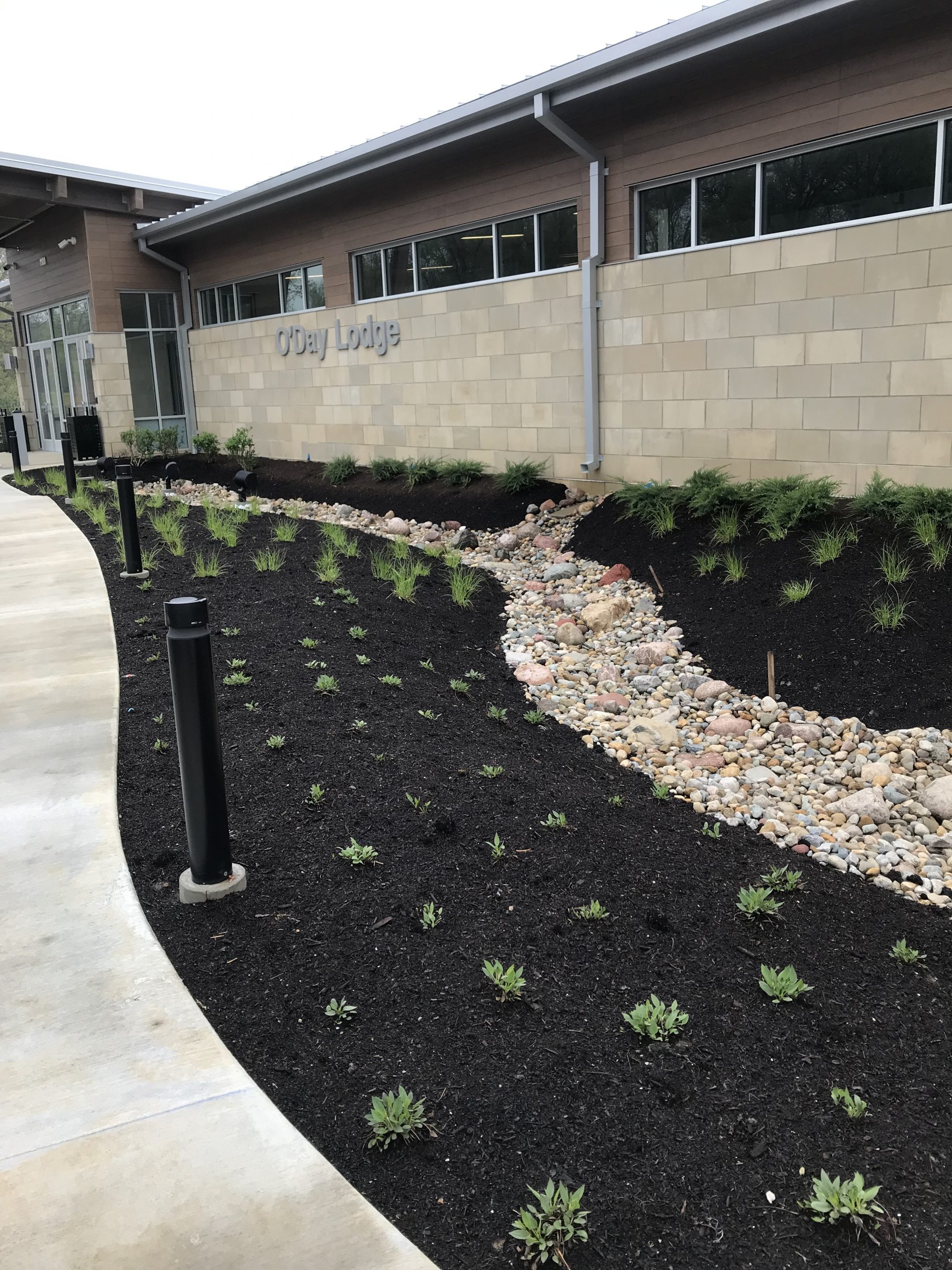 Park amenities included an activity center with a 325-person event space, outdoor amphitheater, large feature playground with water play area, group camping area, mulit-use trails, group picnic shelters, restroom facilities, a salt storage building, and a maintenance facility. The park is located adjacent to O’Day Creek, which was protected from the construction activities to remain in its pristine condition.
