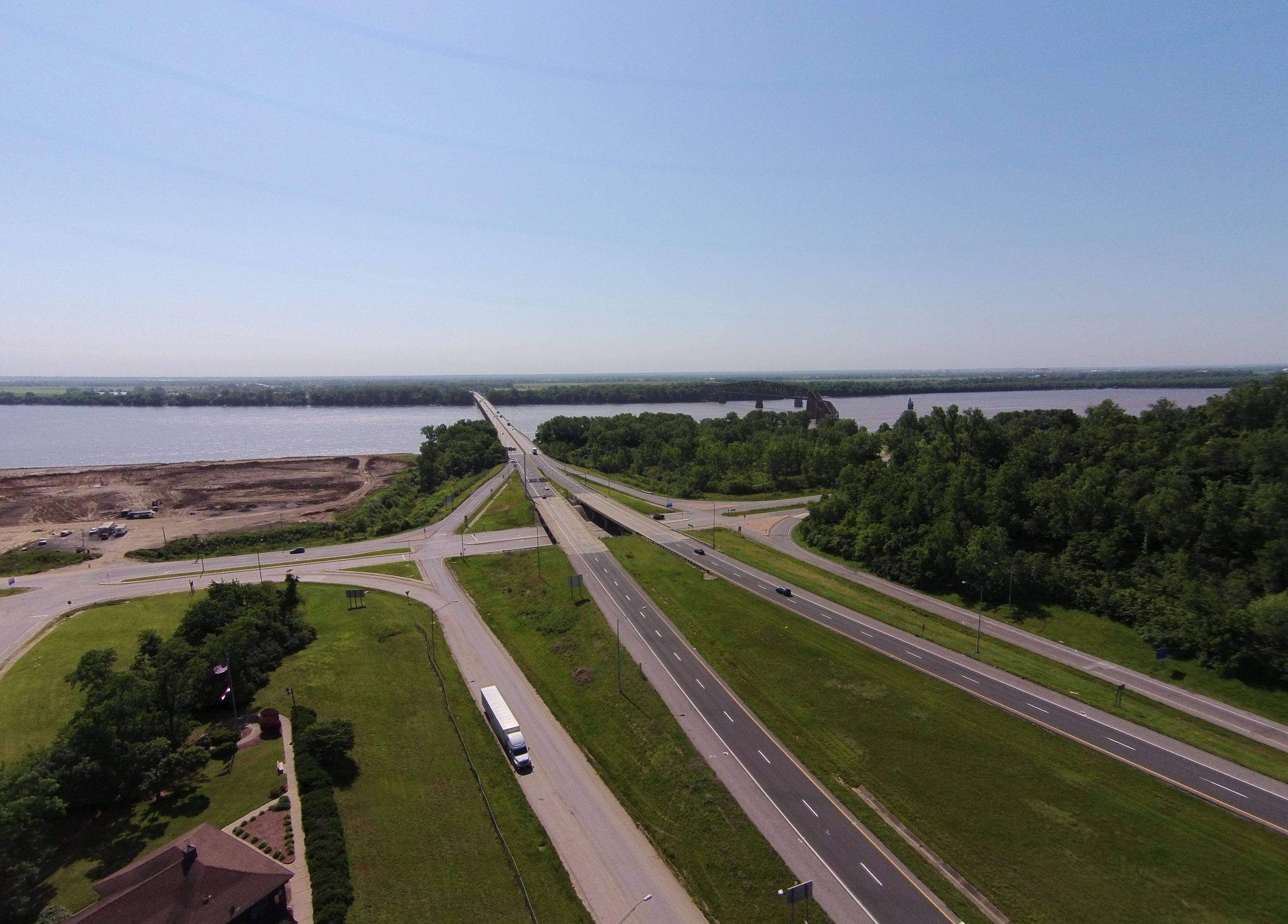 Our design team provided survey, plats & legal descriptions, developed alternatives analysis, ramps design, corridor modeling, geotechnical engineering, utility investigation & coordination, Metropolitan St. Louis Sewer District coordination, Environmental Assessment re-evaluation, public involvement utilizing context solutions principles, traffic modeling, safety analysis, Access Justification Report, and the coordination of a complex maintenance of traffic plan spanning two states. The project also includes the design of a future multi-use path and coordination with Great Rivers Greenway. Final design included grading plans, MSE and soldier pile retaining walls, storm sewers, traffic signals, signing, lighting, ITS, and pavement markings.