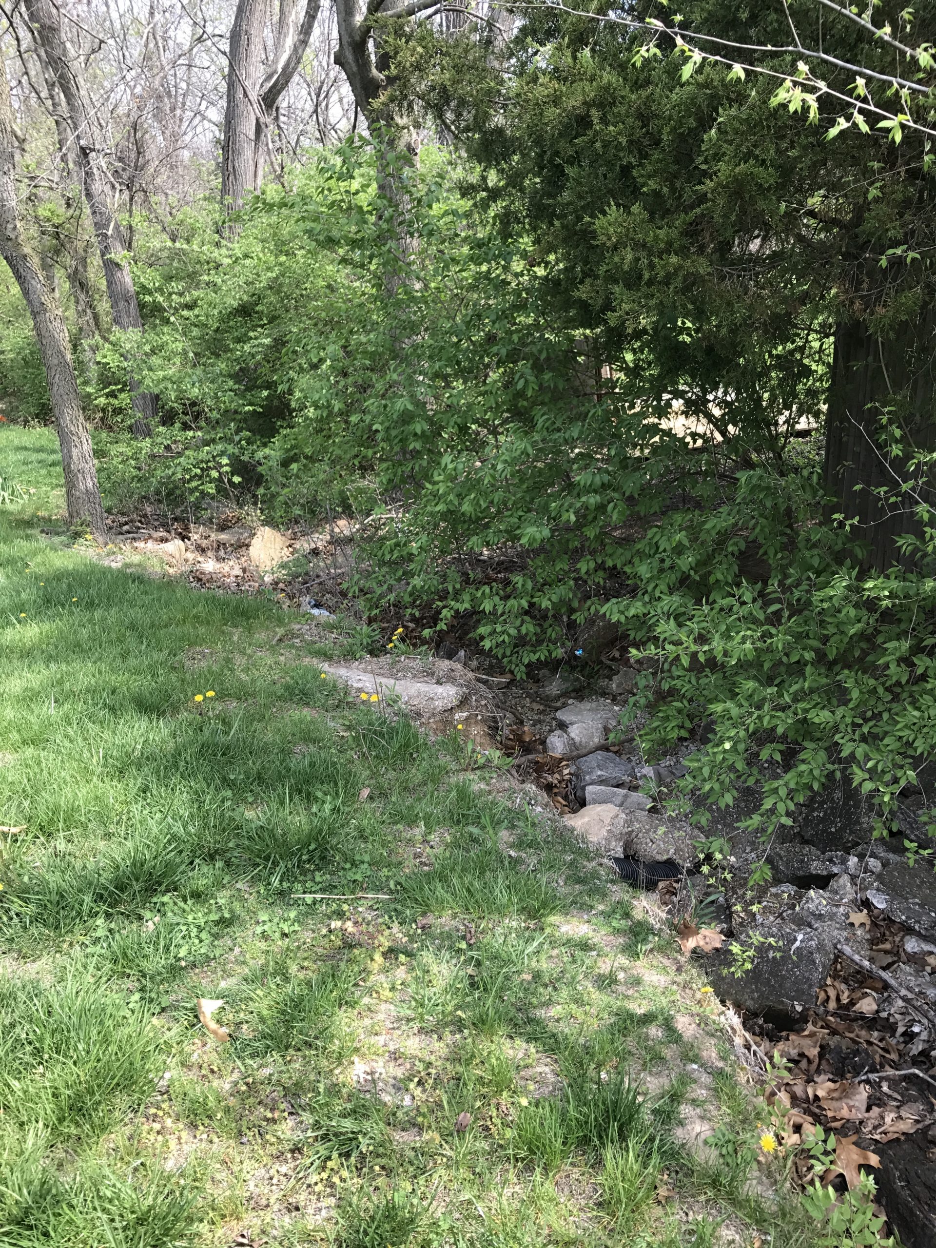 The property owner’s previous solutions were insufficient to keep the stormwater from backing up into the basement, and the City decided to provide public infrastructure. To collect the stormwater, a double inlet was placed near the culvert end, situated to avoid existing public utility conflicts, and surrounded with reinforced turf mat. The inlet was drained below grade to a downstream creek, with additional inlets places along the alignment. Additionally, a swale was created for overland flow in the event the piped system became inundated. Design plans, specifications, easement documents, and cost estimates were provided for permitting and construction. Survey documents were provided for easement acquisition.