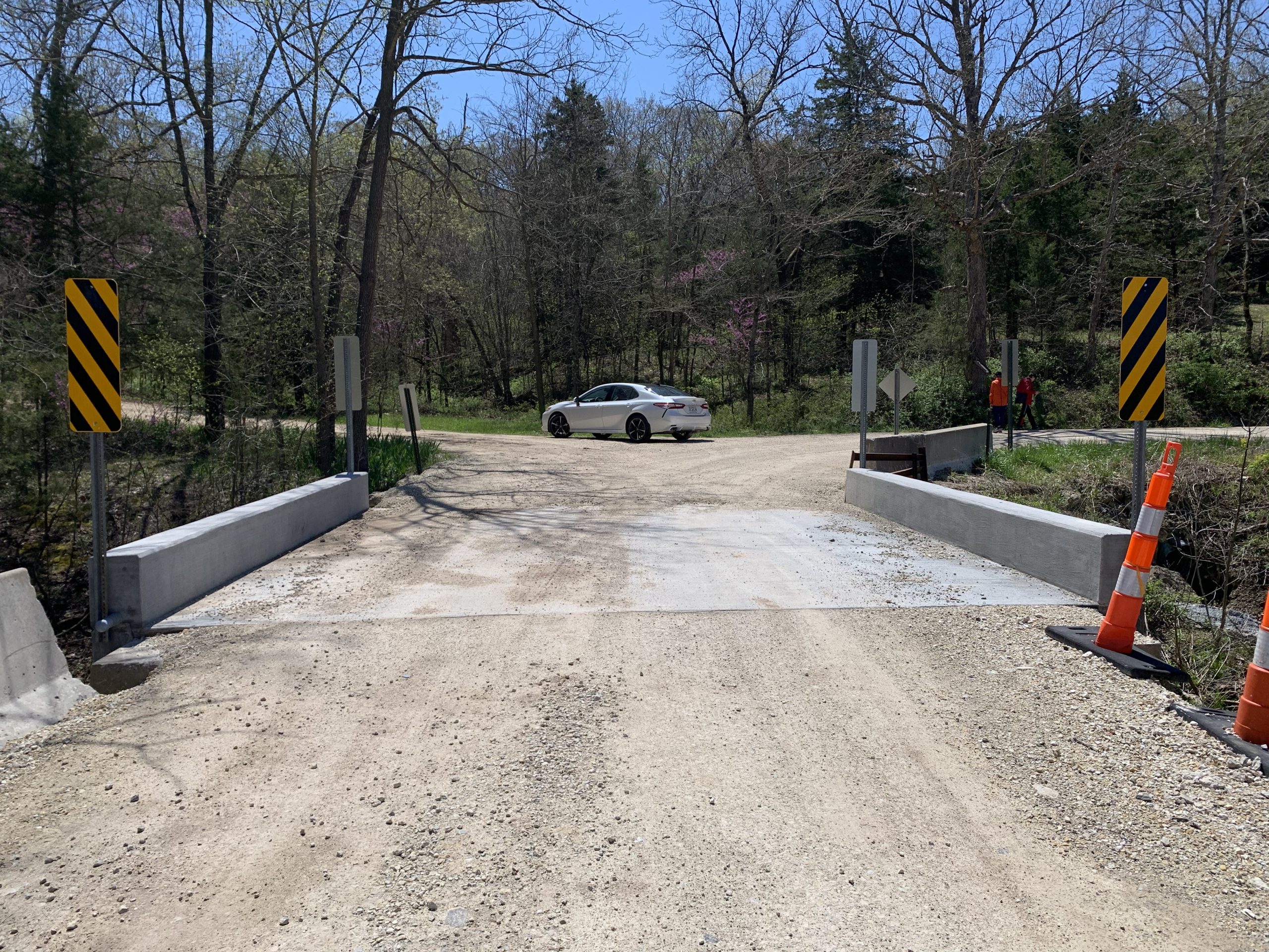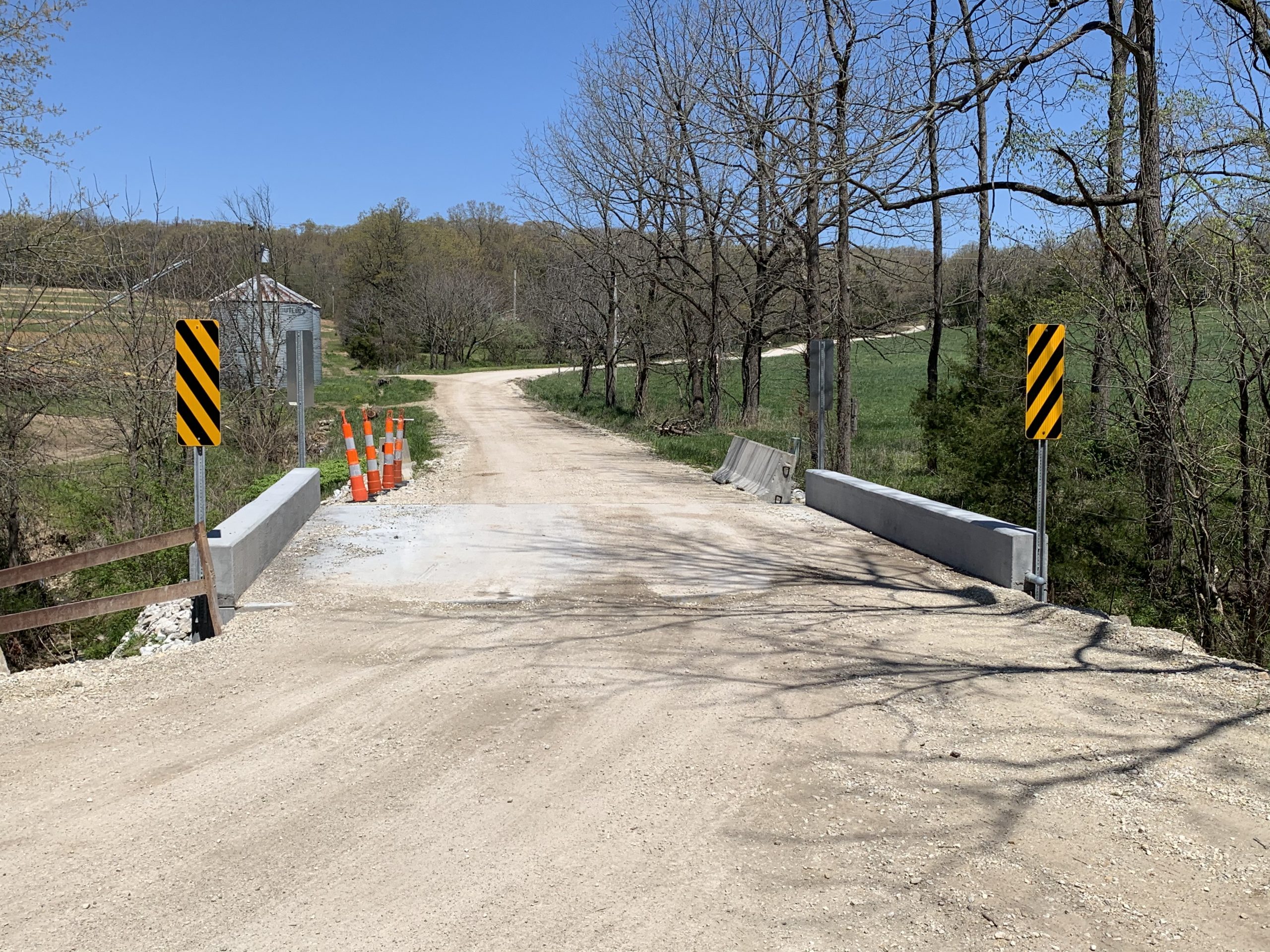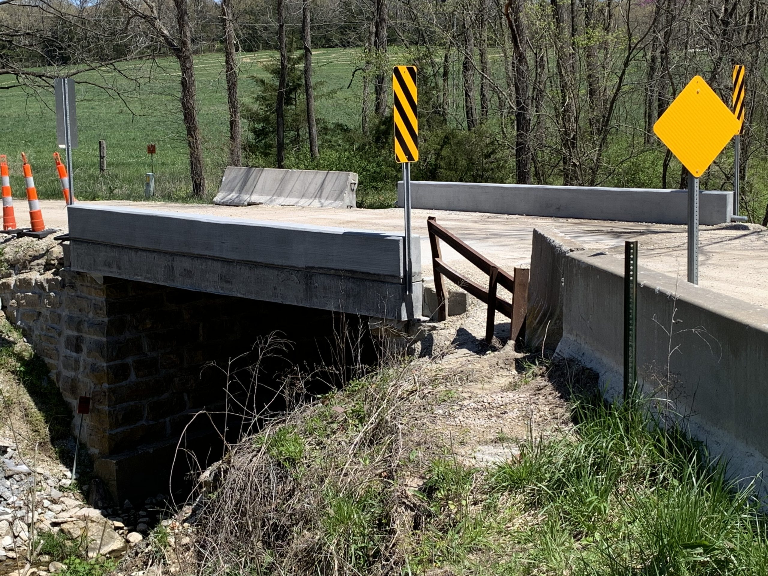 Horner & Shifrin performed an inspection of the 18′ long single span bridge carrying Schoeneberg Road over an unnamed creek. Inspection was completed to determine the scope of needed bridge repairs. The bridge consists of closely spaced shallow steel wide flanges with a concrete deck on stone abutments. Repair and replacement options were investigated and cost estimates provided in a report. Final design and development of construction drawings and specifications of the recommended solution was completed. A new concrete slab superstructure was designed featuring 18-inch concrete curbs. The existing abutments were reused but tuckpointing repairs of the stones were specified. Additional safety reflective markers were placed in the vicinity. H&S was able to complete the work even sooner than the already accelerated schedule which was required when the existing bridge had to be closed to traffic due to poor condition.