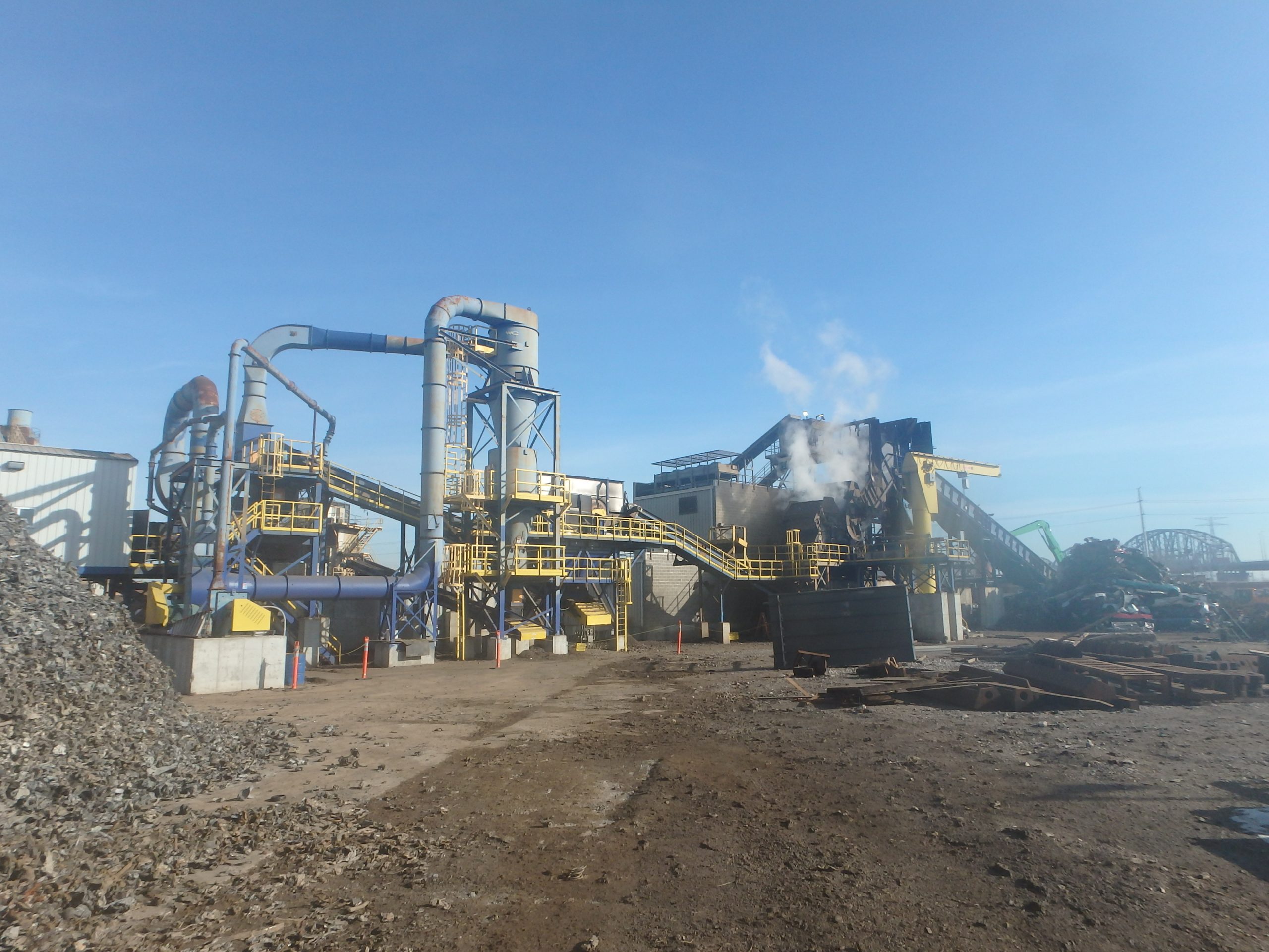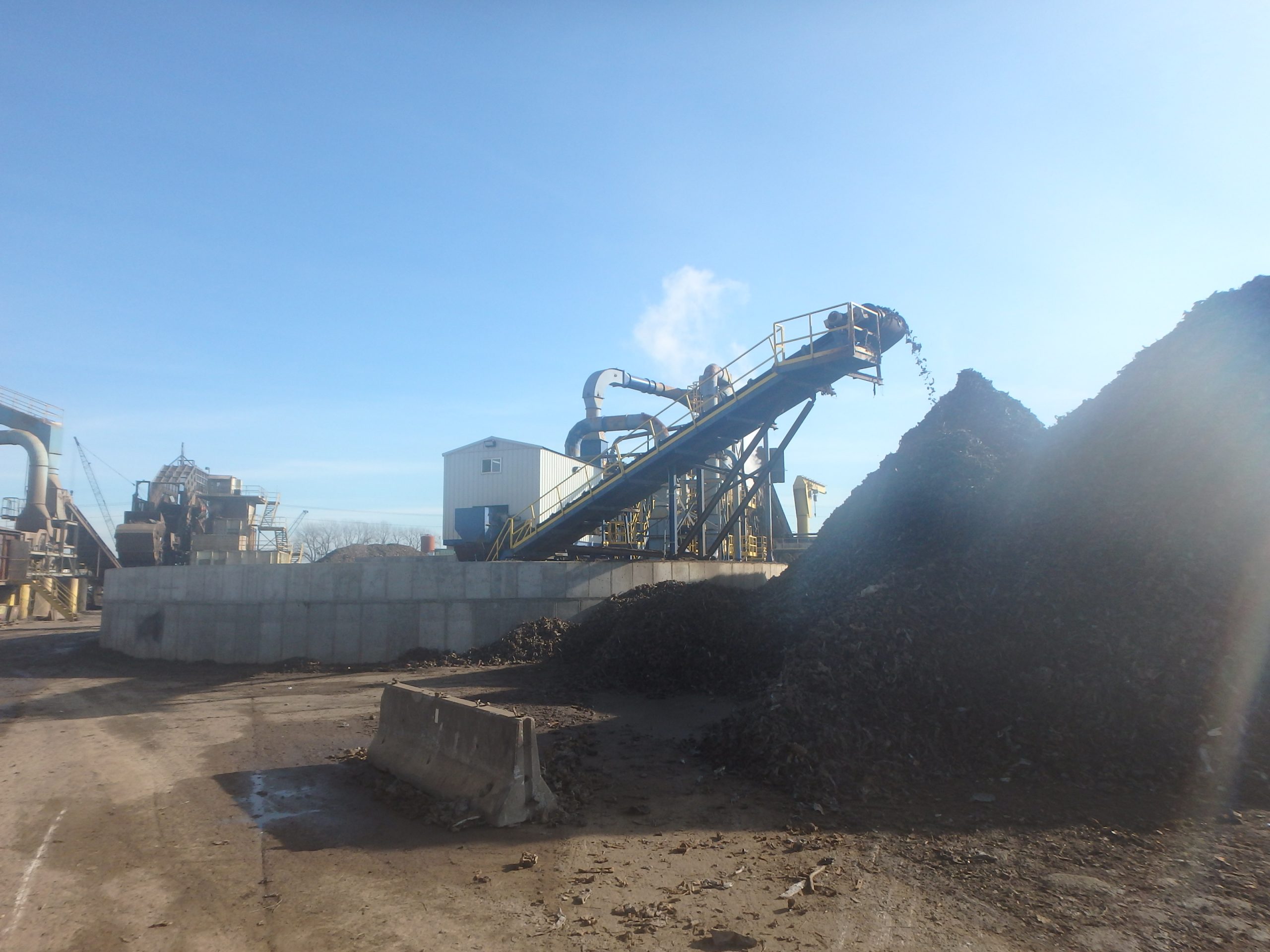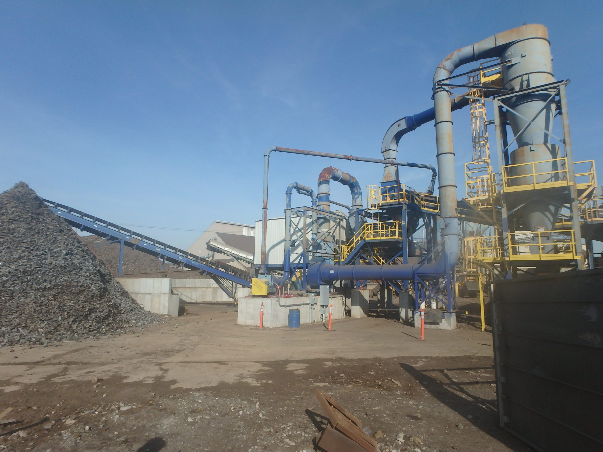 Scrap metal is fed and removed from the shredder by 550-ft of conveyors and sorting equipment. Ferrous and non-ferrous scrap sorting lines are included.