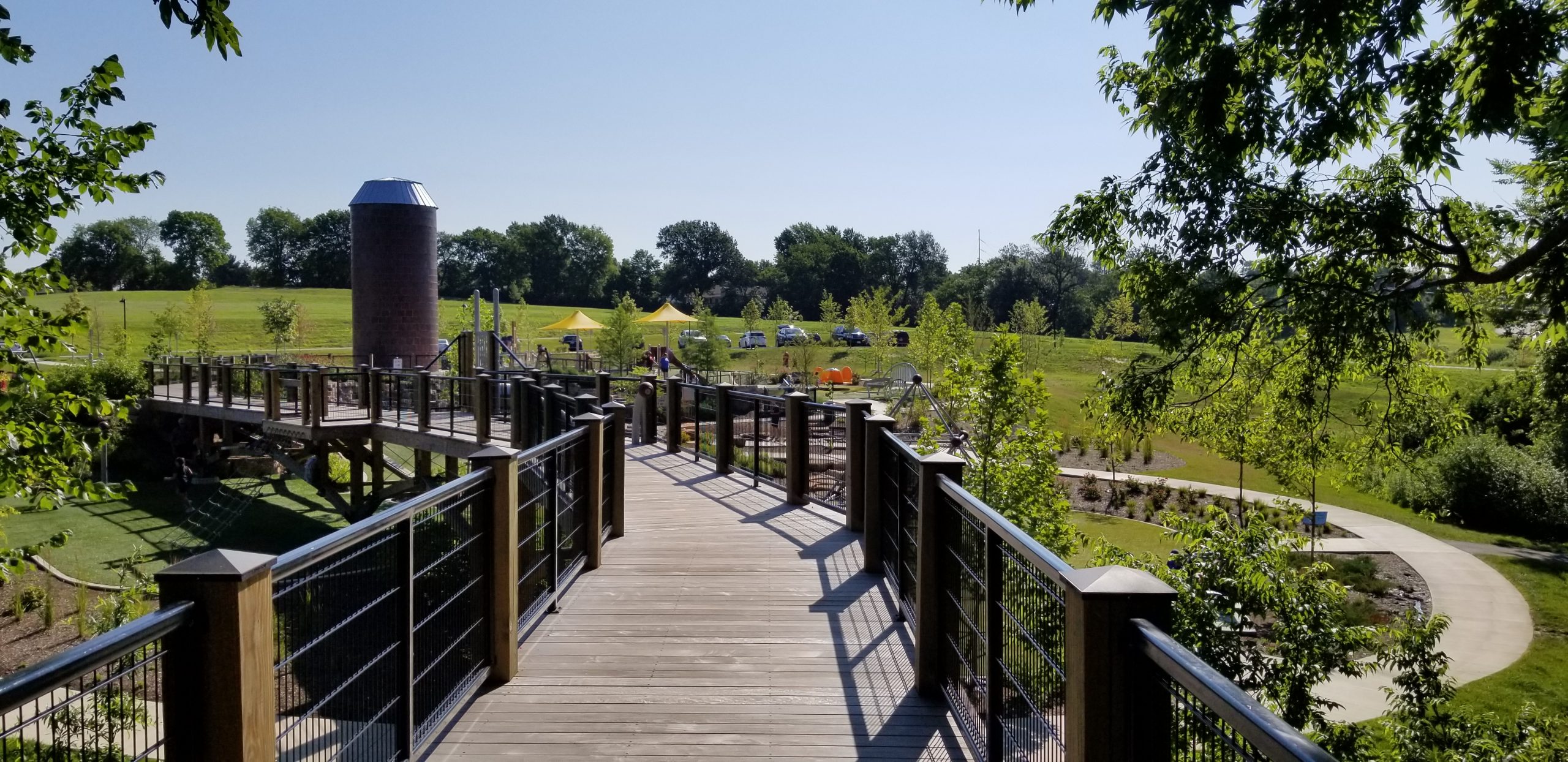Civil site design included detention analysis of two lakes used for fishing, including forbays designed for water quality benefits. Hydraulic analysis was required for the work within the floodplain. Permitting through St. Louis County and Missouri Department of Natural Resources was required for extensive stormwater management and siltation control. The previous farm silo from the early 1900’s was incorporated into the playground area as an amenity to the park, providing a connection to the heritage of the land.