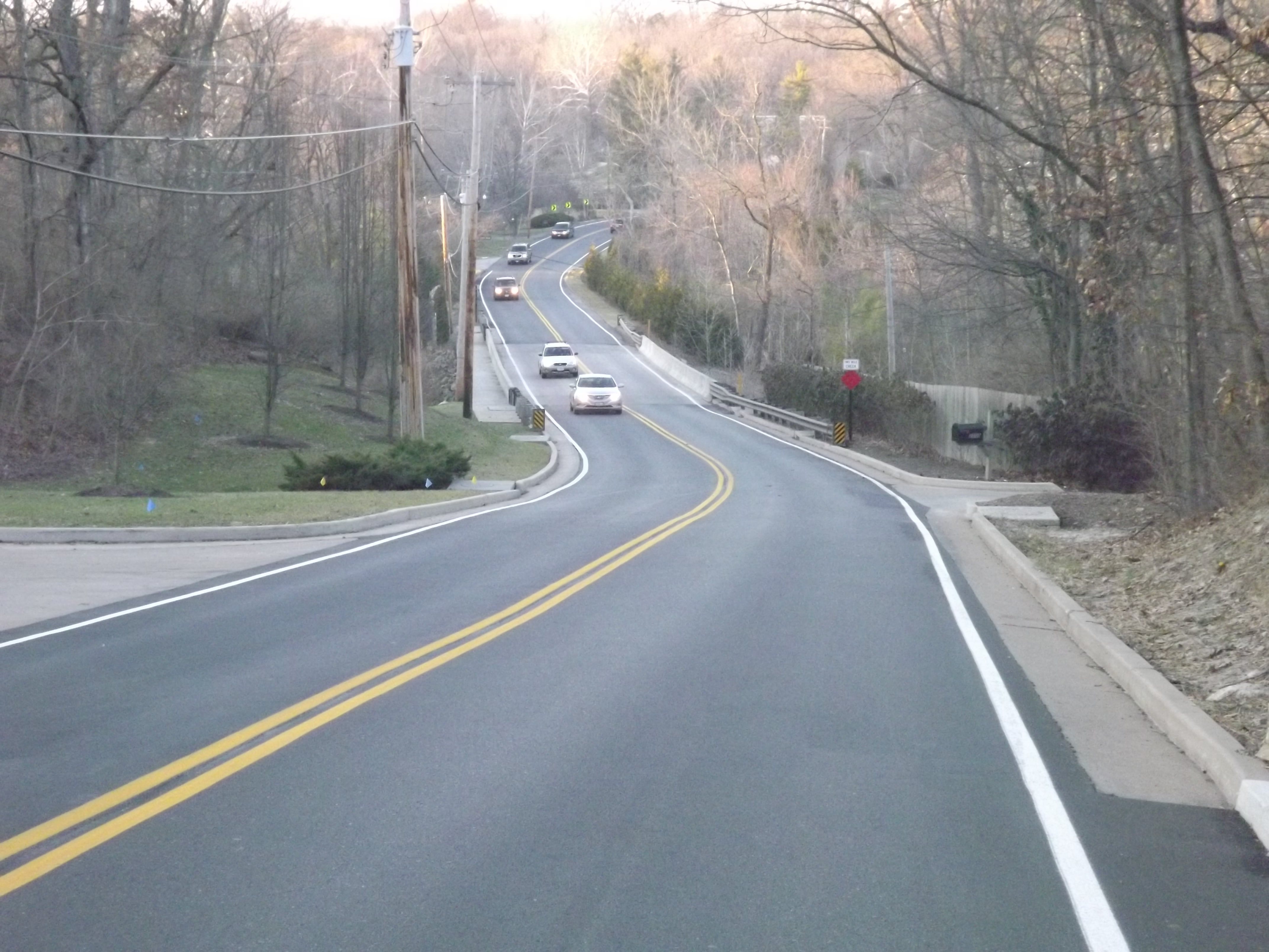 The project consisted of pavement milling and overlay to improve overall pavement conditions and remove significant rutting in some areas. New ADA-compliant sidewalks were added along the route to provide safe access for pedestrians and new concrete curbs and asphalt swales were added to 1.8 mile stretch of the two-lane roadway. Drainage improvements included new storm sewers and water quality Best Management Practices (BMPs).
